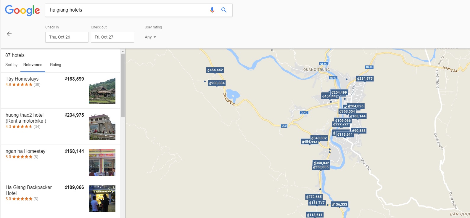 - Search manually in Google Maps to find clusters of buildings in these small towns. Drive there and search for buildings with Nha Nghi posted outside
