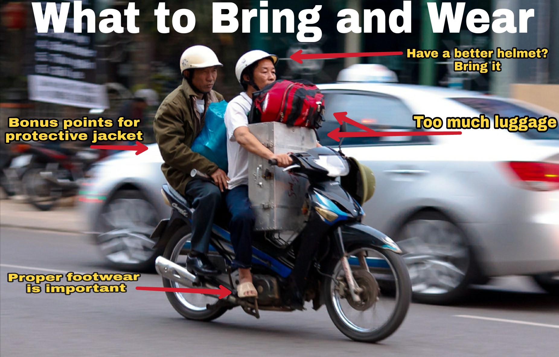 - You can ride with a cheap Vietnamese style helmet